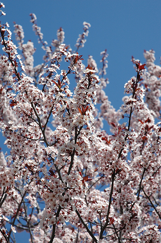 Newport Plum will grow to be about 20 feet tall at maturity, with a spread of 20 feet. It has a low canopy with a typical clearance of 3 feet from the ground, and is suitable for planting under power lines. It grows at a medium rate, and under ideal conditions can be expected to live for approximately 30 years.