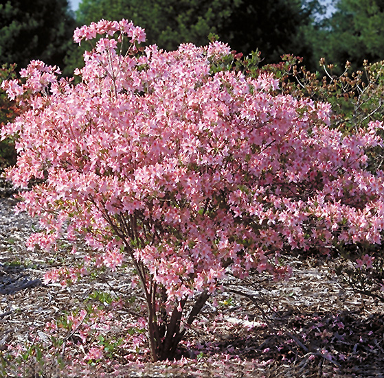 An extremely hardy azalea, covered in beautiful true pink flowers in spring before the leaves, tall upright habit and good fall color; absolutely must have well-drained, highly acidic and organic soil, use plenty of peat moss when planting