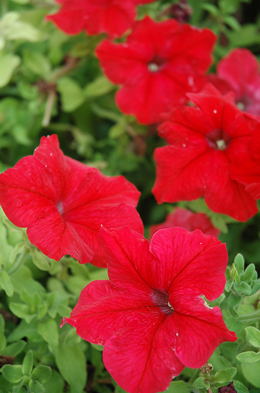 Super Cascade Red Petunia is a dense herbaceous annual with a mounded form. Its medium texture blends into the garden, but can always be balanced by a couple of finer or coarser plants for an effective composition.