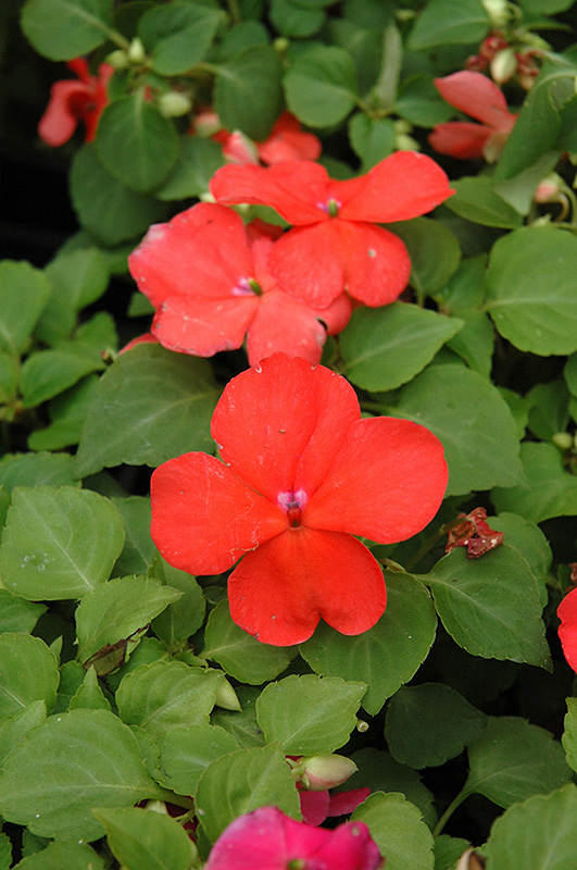 Super Elfin® Salmon Impatiens is a dense herbaceous annual with a mounded form. Its medium texture blends into the garden, but can always be balanced by a couple of finer or coarser plants for an effective composition.