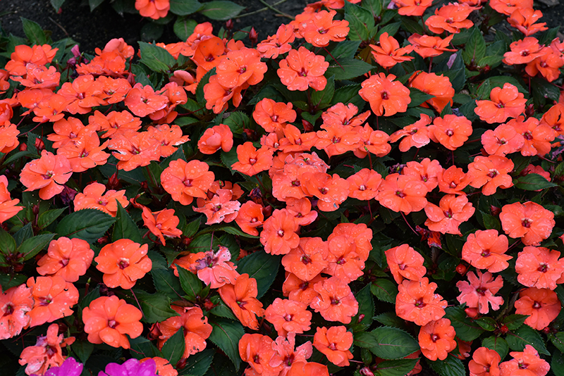 SunPatiens® Vigorous Orange New Guinea Impatiens is a dense herbaceous annual with a mounded form. Its medium texture blends into the garden, but can always be balanced by a couple of finer or coarser plants for an effective composition.