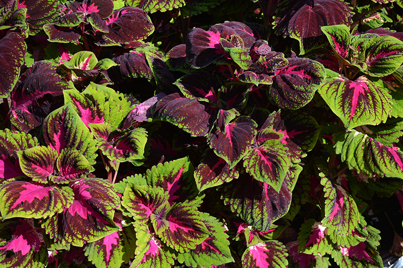 Kong Red Coleus' attractive large serrated pointy leaves remain dark red in color with distinctive light green edges and tinges of cherry red throughout the year on a plant with an upright spreading habit of growth.