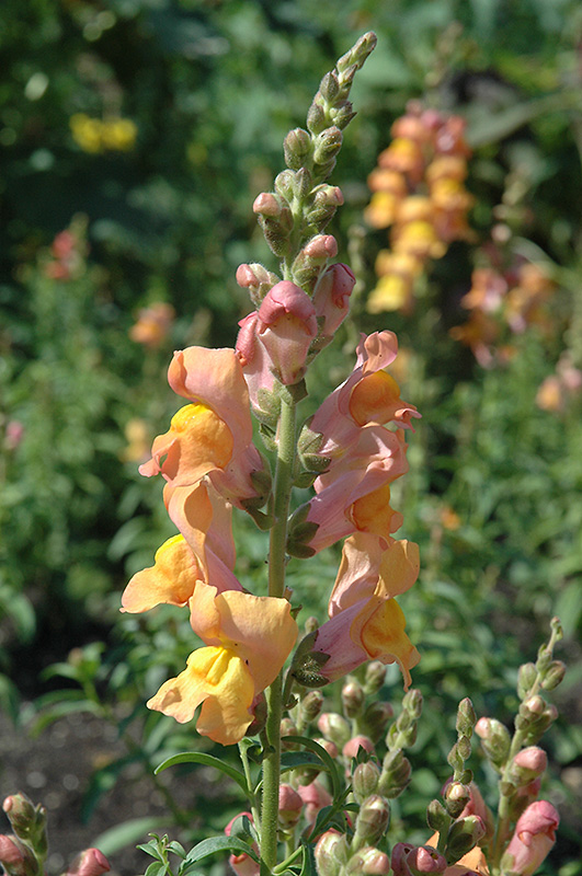 Liberty™ Classic Bronze Snapdragon has masses of beautiful spikes of lightly-scented orange pea-like flowers with coppery-bronze overtones rising above the foliage from mid spring to mid fall, which emerge from distinctive pink flower buds, and which are most effective when planted in groupings. The flowers are excellent for cutting. Its small pointy leaves remain green in color throughout the season.