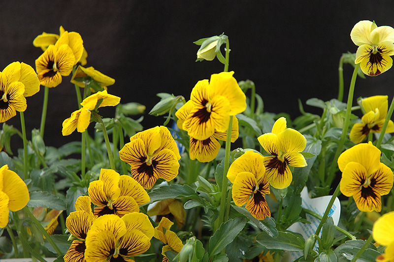 Angel Tiger Eye Pansy has masses of beautiful gold flowers with black eyes and black veins at the ends of the stems from early spring to late fall, which are most effective when planted in groupings. Its crinkled round leaves remain green in color throughout the season.