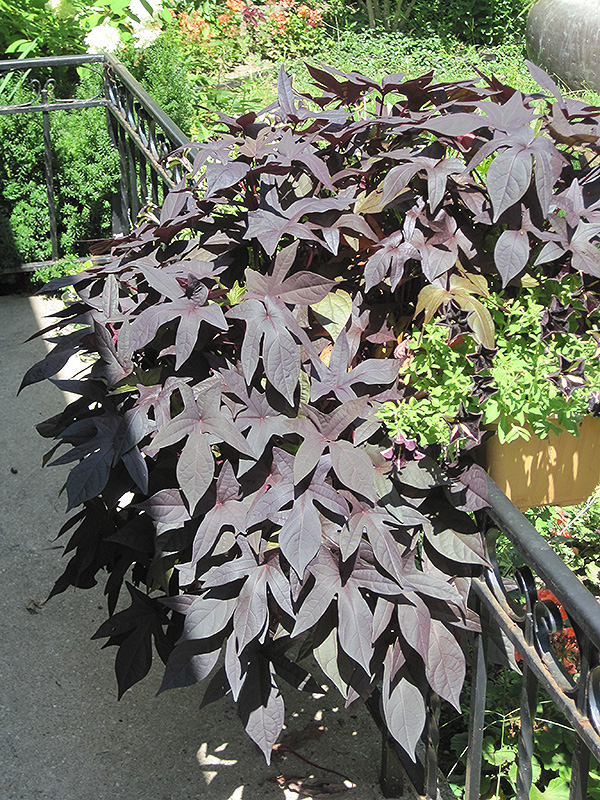 Proven Accents® Blackie Sweet Potato Vine is primarily valued in the garden for its spreading and trailing habit of growth. Its attractive deeply cut heart-shaped leaves remain deep purple in color with hints of black throughout the season.