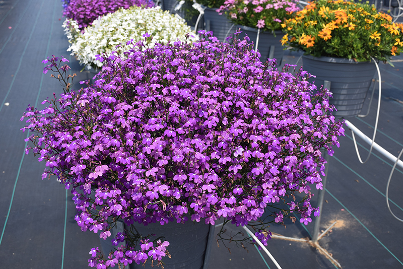 Techno® Violet Lobelia is a fine choice for the garden, but it is also a good selection for planting in hanging baskets. Because of its trailing habit of growth, it is ideally suited for use as a 'spiller' in the 'spiller-thriller-filler' container combination; plant it near the edges where it can spill gracefully over the pot. Note that when growing plants in outdoor containers and baskets, they may require more frequent waterings than they would in the yard or garden.