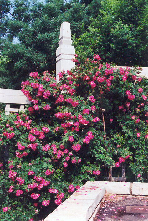 William Baffin Rose is a multi-stemmed deciduous woody vine with a twining and trailing habit of growth. Its average texture blends into the landscape, but can be balanced by one or two finer or coarser trees or shrubs for an effective composition.