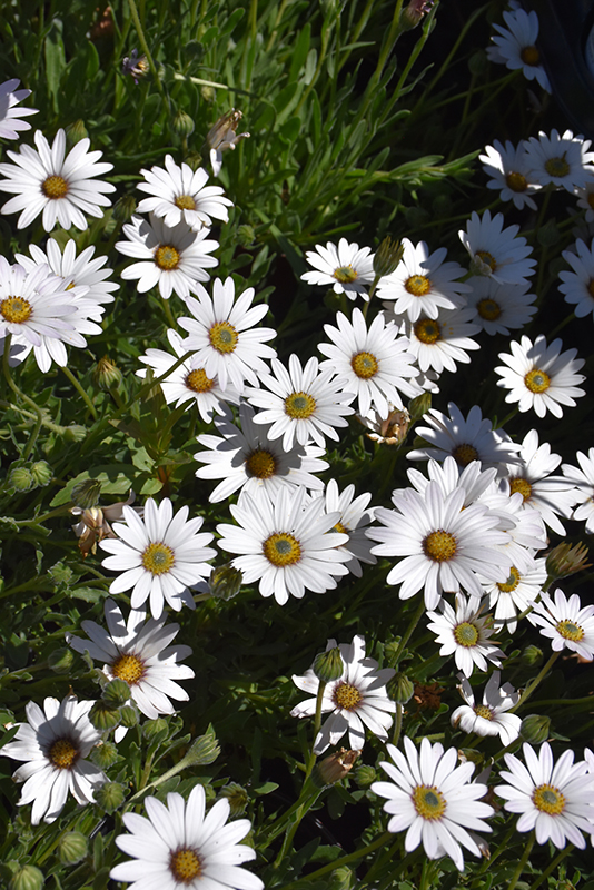 Avalanche African Daisy is blanketed in stunning white daisy flowers at the ends of the stems from early summer to mid fall. The flowers are excellent for cutting. Its spiny narrow leaves remain green in color throughout the season.