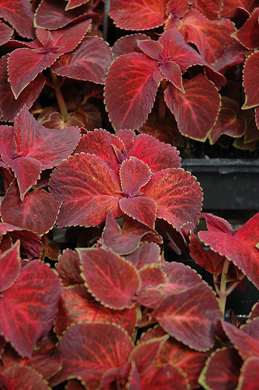 Wizard Velvet Red Coleus is an herbaceous annual with an upright spreading habit of growth. Its relatively coarse texture can be used to stand it apart from other garden plants with finer foliage.