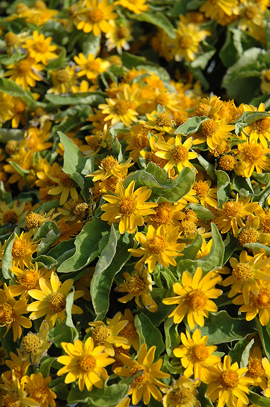 Melampodium is bathed in stunning yellow daisy flowers with gold eyes at the ends of the stems from late spring to early fall. Its pointy leaves remain green in color throughout the season.