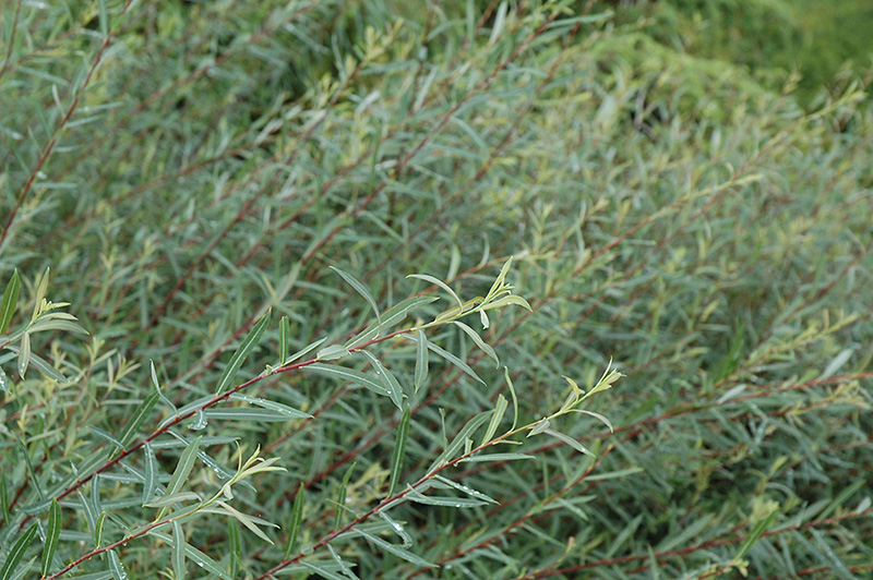 Dwarf Arctic Willow has bluish-green deciduous foliage on a plant with a round habit of growth. The narrow leaves turn yellow in fall. The smooth bark and deep purple branches add an interesting dimension to the landscape.