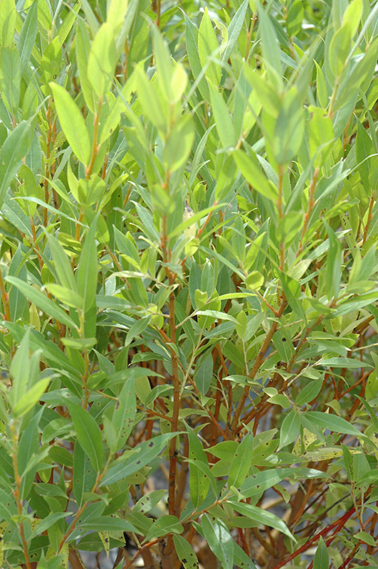 Flame Willow has forest green deciduous foliage on a tree with an oval habit of growth. The glossy narrow leaves turn gold in fall. The furrowed brown bark and orange branches are extremely showy and add significant winter interest.