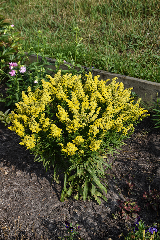 Little Lemon Goldenrod will grow to be about 10 inches tall at maturity extending to 14 inches tall with the flowers, with a spread of 18 inches. When grown in masses or used as a bedding plant, individual plants should be spaced approximately 15 inches apart. It grows at a fast rate, and under ideal conditions can be expected to live for approximately 10 years. As an herbaceous perennial, this plant will usually die back to the crown each winter, and will regrow from the base each spring. Be careful not to disturb the crown in late winter when it may not be readily seen!