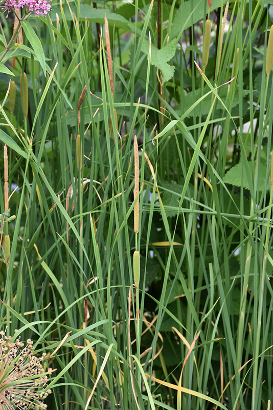 Miniature Cattail has masses of beautiful spikes of brown catkins rising above the foliage from early to mid summer, which are most effective when planted in groupings. Its grassy leaves are dark green in color. The foliage often turns yellow in fall.