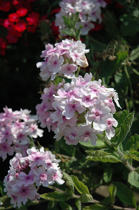 Superbena® Pink Parfait Verbena features showy clusters of shell pink star-shaped flowers with rose eyes at the ends of the stems from late spring to mid fall. The flowers are excellent for cutting. Its tiny tomentose narrow leaves remain green in color throughout the season.