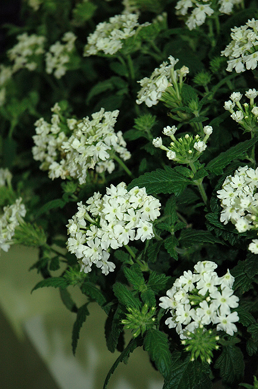 Superbena® Royale Whitecap Verbena features showy clusters of white star-shaped flowers at the ends of the stems from late spring to mid fall. The flowers are excellent for cutting. Its tiny tomentose narrow leaves remain green in color throughout the season.