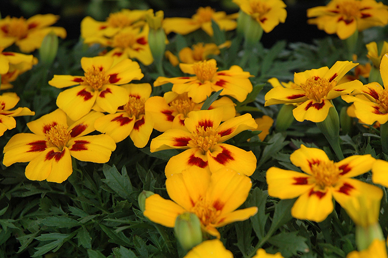 Disco Flame Marigold is an herbaceous annual with an upright spreading habit of growth. It brings an extremely fine and delicate texture to the garden composition and should be used to full effect.