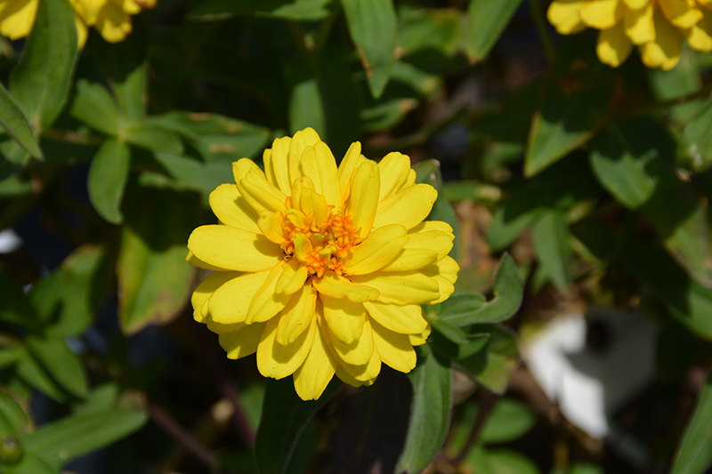 Profusion Double Yellow Zinnia is an herbaceous annual with an upright spreading habit of growth. Its medium texture blends into the garden, but can always be balanced by a couple of finer or coarser plants for an effective composition.