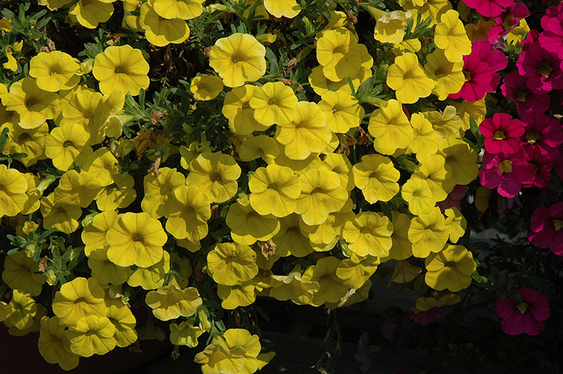 MiniFamous® Deep Yellow Calibrachoa is a fine choice for the garden, but it is also a good selection for planting in outdoor containers and hanging baskets. Because of its trailing habit of growth, it is ideally suited for use as a 'spiller' in the 'spiller-thriller-filler' container combination; plant it near the edges where it can spill gracefully over the pot. Note that when growing plants in outdoor containers and baskets, they may require more frequent waterings than they would in the yard or garden.