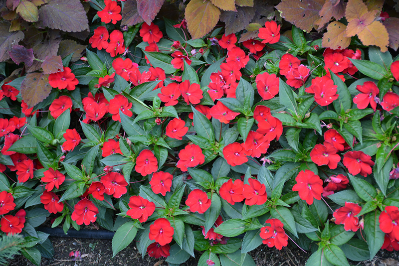SunPatiens® Compact Red New Guinea Impatiens will grow to be about 24 inches tall at maturity, with a spread of 24 inches. When grown in masses or used as a bedding plant, individual plants should be spaced approximately 20 inches apart. Its foliage tends to remain dense right to the ground, not requiring facer plants in front. This fast-growing annual will normally live for one full growing season, needing replacement the following year.