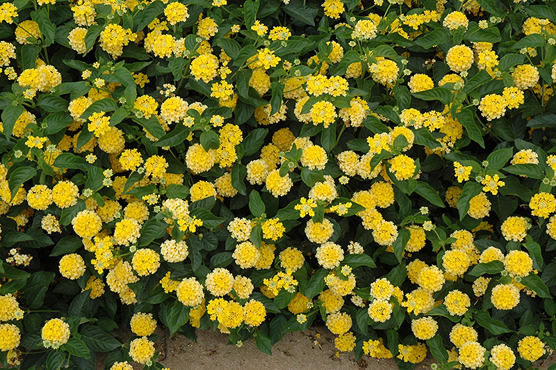 Landmark Yellow Lantana features showy cymes of yellow flowers at the ends of the branches from early summer to mid fall. Its tomentose pointy leaves remain green in color throughout the year.