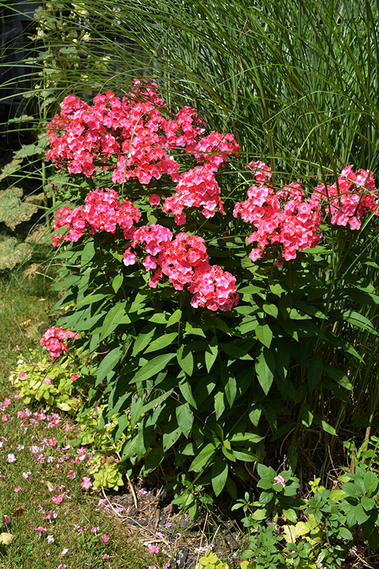 Flame Coral Garden Phlox features bold fragrant conical coral-pink star-shaped flowers with hot pink overtones at the ends of the stems from early summer to early fall. The flowers are excellent for cutting. Its narrow leaves remain emerald green in color throughout the season.