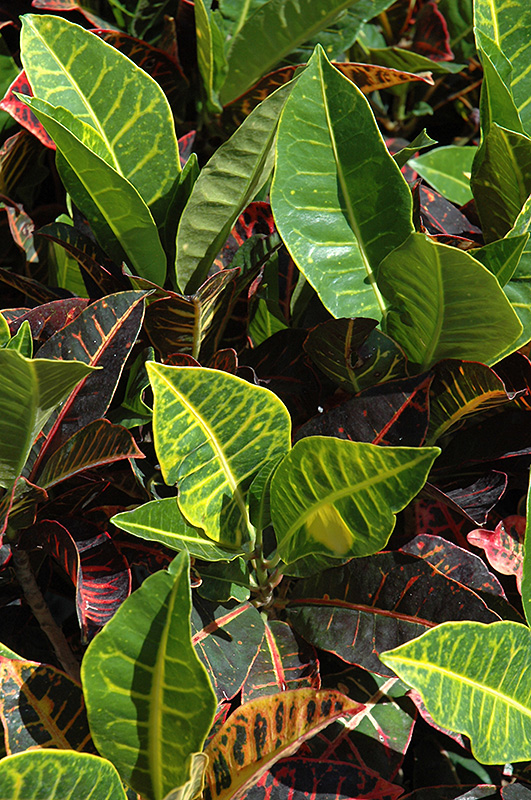 Variegated Croton is a dense herbaceous evergreen tropical plant with an upright spreading habit of growth. Its wonderfully bold, coarse texture can be very effective in a balanced garden composition.