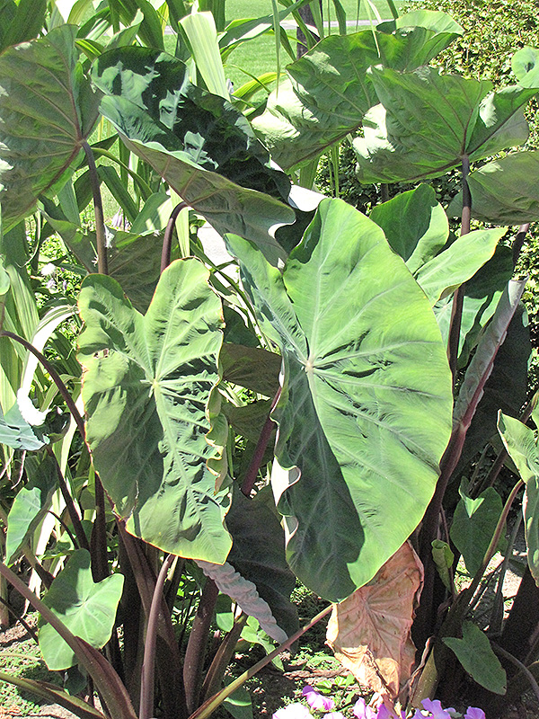 Black Stem Elephant Ear is an open herbaceous tropical plant with a shapely form and gracefully arching foliage. Its wonderfully bold, coarse texture can be very effective in a balanced garden composition.