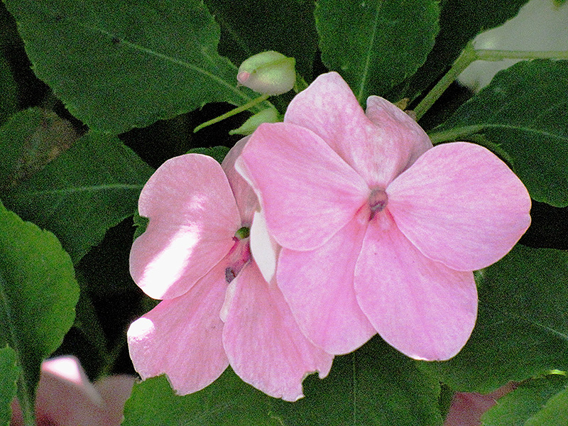 Dazzler Blue Pearl Impatiens is blanketed in stunning lavender round flowers with pink overtones at the ends of the stems from mid spring to late summer. Its small pointy leaves remain green in color throughout the season.