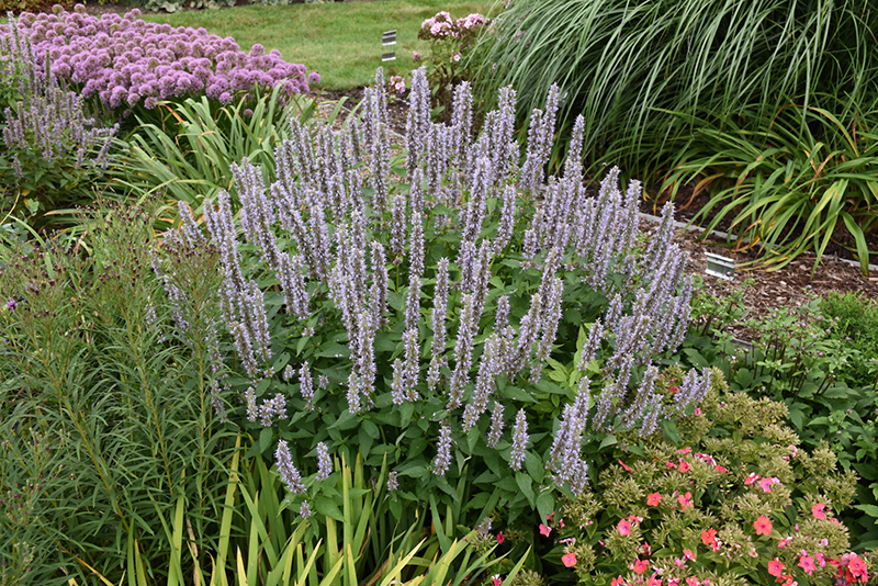 Blue Fortune Anise Hyssop has masses of beautiful spikes of lightly-scented blue flowers with lavender overtones rising above the foliage from mid summer to mid fall, which are most effective when planted in groupings. The flowers are excellent for cutting. Its attractive fragrant pointy leaves remain dark green in color throughout the season.