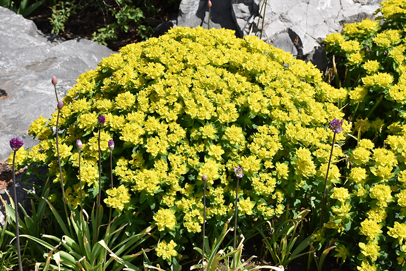 Cushion Spurge will grow to be about 18 inches tall at maturity, with a spread of 24 inches. It grows at a medium rate, and under ideal conditions can be expected to live for approximately 10 years. As an herbaceous perennial, this plant will usually die back to the crown each winter, and will regrow from the base each spring. Be careful not to disturb the crown in late winter when it may not be readily seen!