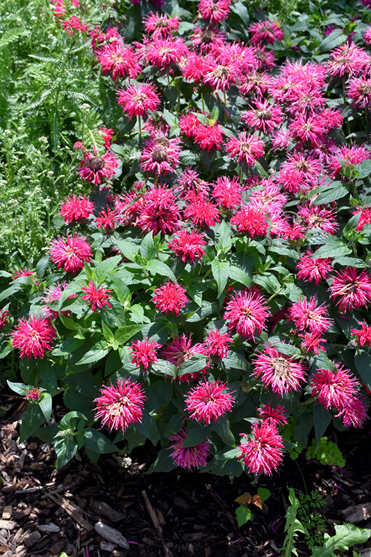 A petite form of bee balm that produces multitudes of striking rose flowers in late spring through summer; this very compact form is mildew resistant as well; great for massing in the front of borders