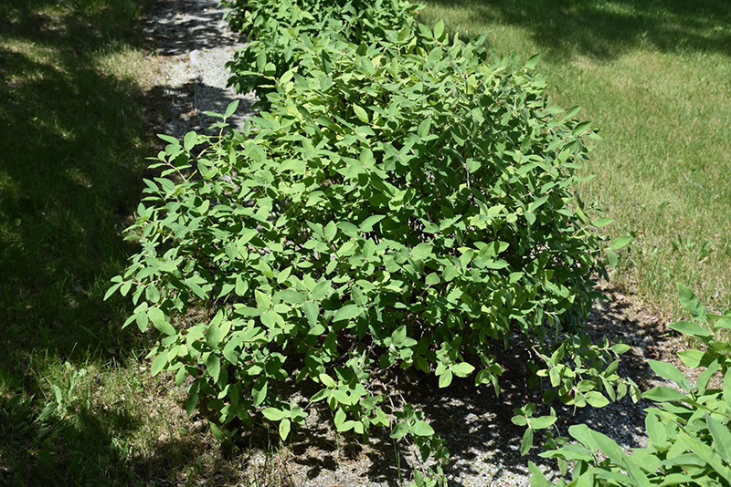 Aurora Honeyberry will grow to be about 5 feet tall at maturity, with a spread of 4 feet. It tends to fill out right to the ground and therefore doesn't necessarily require facer plants in front, and is suitable for planting under power lines. It grows at a medium rate, and under ideal conditions can be expected to live for approximately 20 years. While it is considered to be somewhat self-pollinating, it tends to set heavier quantities of fruit with a different variety of the same species growing nearby.