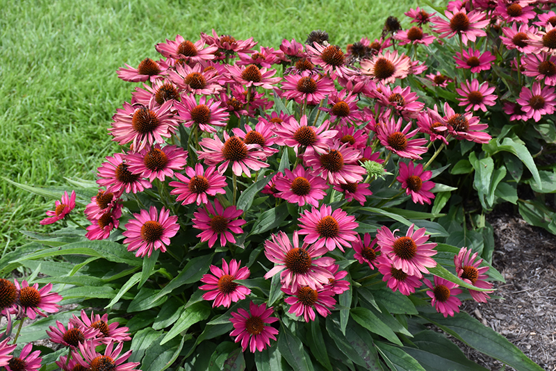 Kismet® Raspberry Coneflower will grow to be about 16 inches tall at maturity, with a spread of 24 inches. Its foliage tends to remain dense right to the ground, not requiring facer plants in front. It grows at a fast rate, and under ideal conditions can be expected to live for approximately 10 years. As an herbaceous perennial, this plant will usually die back to the crown each winter, and will regrow from the base each spring. Be careful not to disturb the crown in late winter when it may not be readily seen!