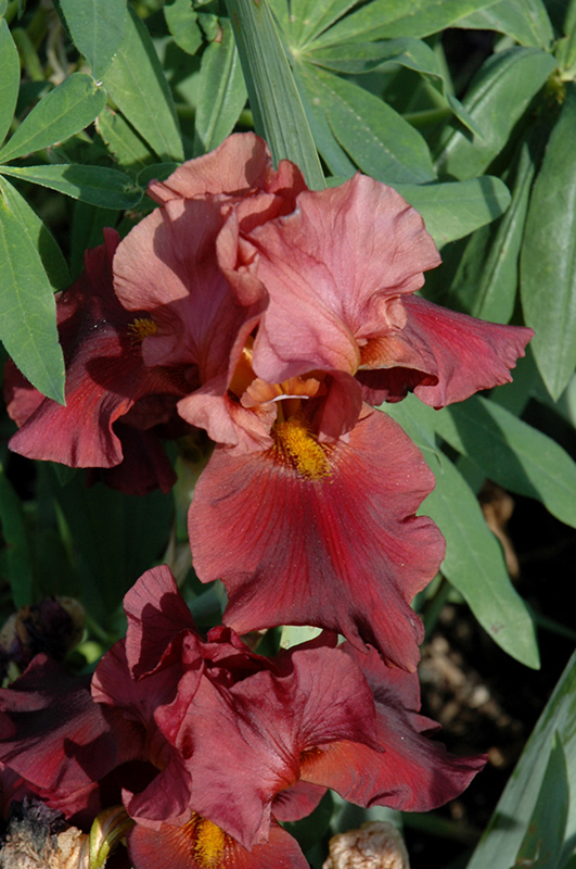 This rich iris produces deep ruby red blooms with gold beards; a stunning addition to the perennial border; also excellent massed in groupings in the garden; will quickly form dense colonies