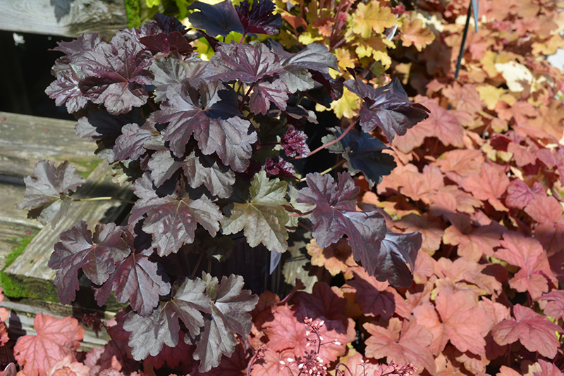 Obsidian Coral Bells is a fine choice for the garden, but it is also a good selection for planting in outdoor pots and containers. With its upright habit of growth, it is best suited for use as a 'thriller' in the 'spiller-thriller-filler' container combination; plant it near the center of the pot, surrounded by smaller plants and those that spill over the edges. Note that when growing plants in outdoor containers and baskets, they may require more frequent waterings than they would in the yard or garden. Be aware that in our climate, most plants cannot be expected to survive the winter if left in containers outdoors, and this plant is no exception. Contact our experts for more information on how to protect it over the winter months.