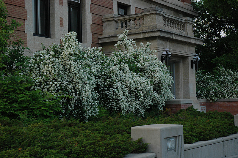 Blizzard Mockorange will grow to be about 7 feet tall at maturity, with a spread of 5 feet. It tends to be a little leggy, with a typical clearance of 2 feet from the ground, and is suitable for planting under power lines. It grows at a fast rate, and under ideal conditions can be expected to live for approximately 30 years.