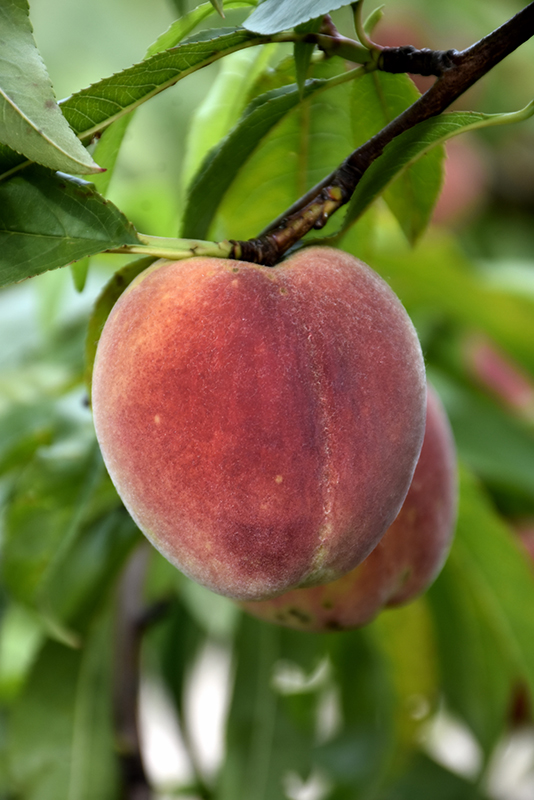 A beautiful fruit tree, bearing juicy golden freestone peaches that are flushed with red; showy pink flowers in spring on a low, spreading habit; susceptible to late spring freezes and disease, needs full sun and well-drained soil