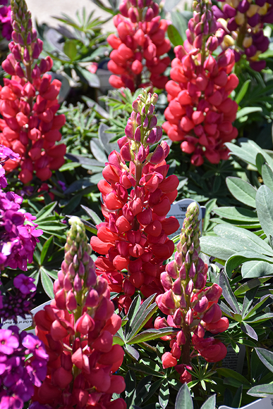 Westcountry™ Red Rum Lupine will grow to be about 24 inches tall at maturity extending to 3 feet tall with the flowers, with a spread of 18 inches. When grown in masses or used as a bedding plant, individual plants should be spaced approximately 14 inches apart. It grows at a fast rate, and under ideal conditions can be expected to live for approximately 3 years. As an herbaceous perennial, this plant will usually die back to the crown each winter, and will regrow from the base each spring. Be careful not to disturb the crown in late winter when it may not be readily seen!