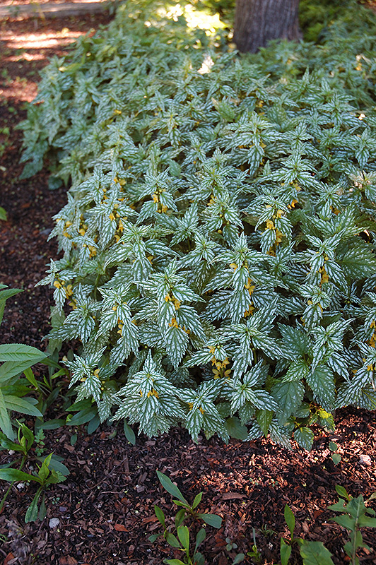 Hermann's Pride Yellow Archangel features subtle spikes of yellow flowers rising above the foliage in mid spring. Its attractive serrated narrow leaves remain silver in color with distinctive dark green veins throughout the season.