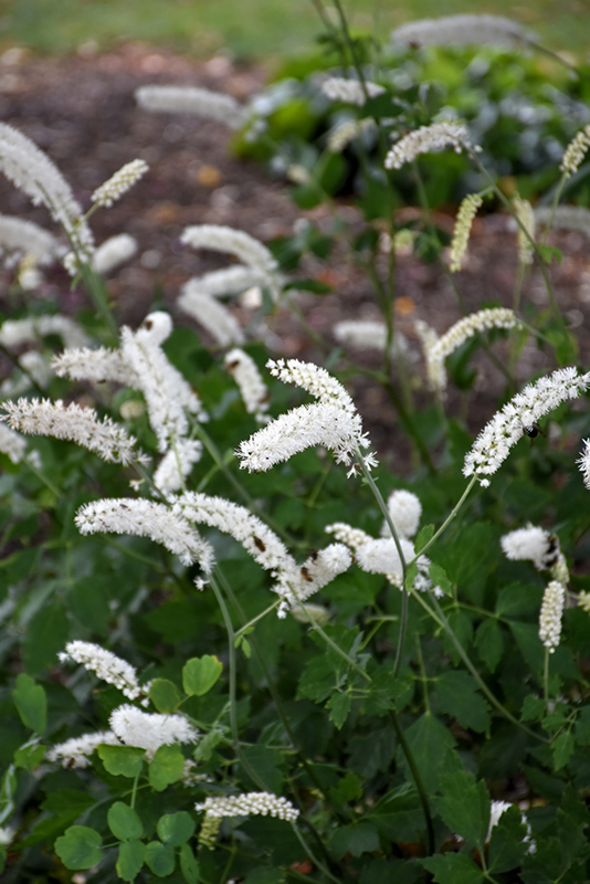 American Bugbane features bold spikes of fragrant white flowers rising above the foliage from mid summer to early fall. The flowers are excellent for cutting. Its attractive serrated compound leaves emerge burgundy in spring, turning dark green in color with prominent deep purple tips throughout the season. The brown fruits are carried on spikes from late summer to late winter.