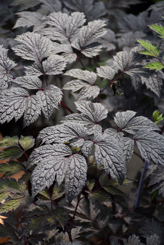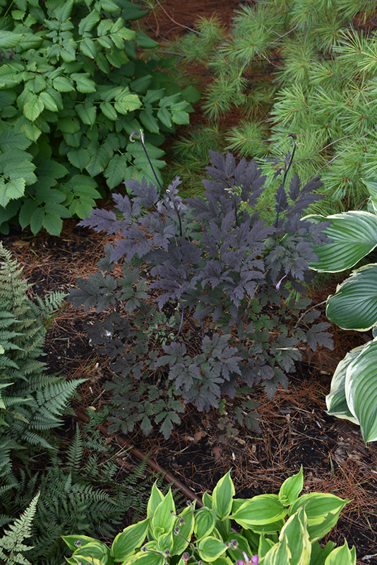 Chocoholic Bugbane is blanketed in stunning spikes of fragrant white flowers with shell pink overtones rising above the foliage from mid to late summer. The flowers are excellent for cutting. Its attractive deeply cut compound leaves emerge deep purple in spring, turning dark gray in color with distinctive black veins and tinges of purple throughout the season. The brown fruits are carried on spikes from late summer to late winter. The dark red stems are very colorful and add to the overall interest of the plant.