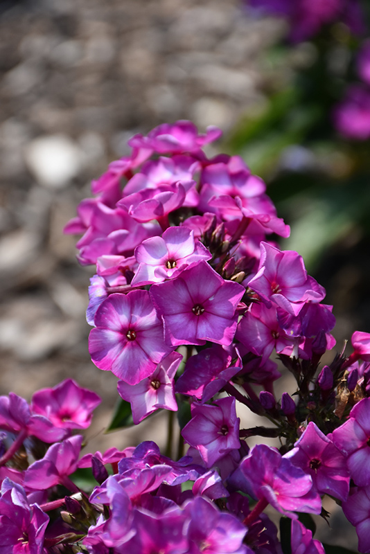 Sweet Summer® Fantasy Garden Phlox features bold clusters of lightly-scented violet star-shaped flowers with purple overtones, hot pink eyes and a white flare at the ends of the stems from mid to late summer. The flowers are excellent for cutting. Its pointy leaves remain green in color throughout the season.