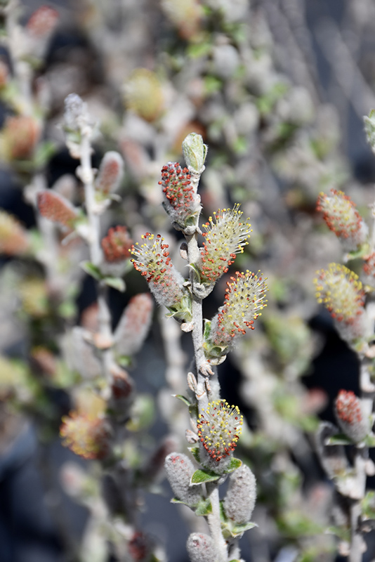 Iceberg Alley® Sageleaf Willow features delicate silver catkins with red overtones and yellow anthers along the branches from late winter to early spring before the leaves. The flowers are excellent for cutting. It has attractive grayish green foliage with white undersides and tinges of silver which emerges white in spring. The fuzzy pointy leaves are highly ornamental but do not develop any appreciable fall color. The smooth bark and white branches are extremely showy and add significant winter interest.