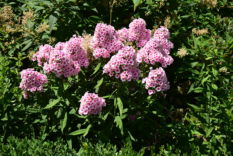 Bright Eyes Garden Phlox will grow to be about 30 inches tall at maturity, with a spread of 30 inches. When grown in masses or used as a bedding plant, individual plants should be spaced approximately 24 inches apart. It tends to be leggy, with a typical clearance of 1 foot from the ground, and should be underplanted with lower-growing perennials. It grows at a medium rate, and under ideal conditions can be expected to live for approximately 10 years. As an herbaceous perennial, this plant will usually die back to the crown each winter, and will regrow from the base each spring. Be careful not to disturb the crown in late winter when it may not be readily seen!