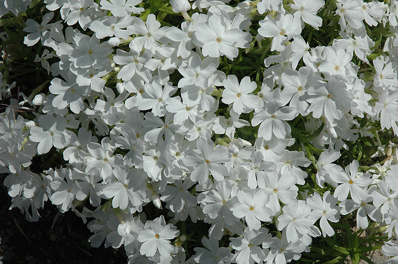 White Delight Moss Phlox will grow to be only 4 inches tall at maturity, with a spread of 18 inches. When grown in masses or used as a bedding plant, individual plants should be spaced approximately 15 inches apart. Its foliage tends to remain low and dense right to the ground. It grows at a medium rate, and under ideal conditions can be expected to live for approximately 10 years. As an evegreen perennial, this plant will typically keep its form and foliage year-round.