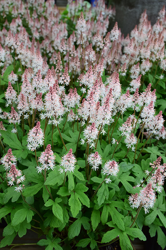 Spring Symphony Foamflower is an herbaceous evergreen perennial with tall flower stalks held atop a low mound of foliage. It brings an extremely fine and delicate texture to the garden composition and should be used to full effect.