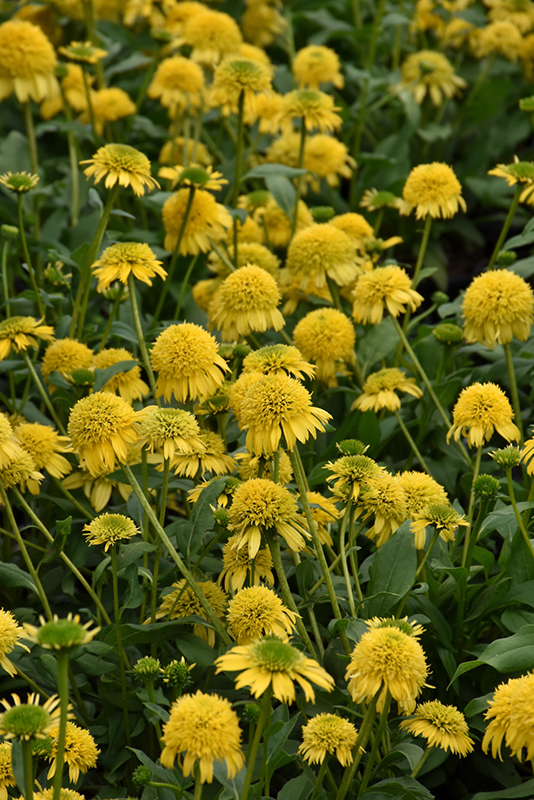 Sunny Days™ Lemon Coneflower has masses of beautiful lightly-scented double lemon yellow daisy flowers at the ends of the stems from mid summer to mid fall, which are most effective when planted in groupings. The flowers are excellent for cutting. Its pointy leaves remain dark green in color throughout the season.
