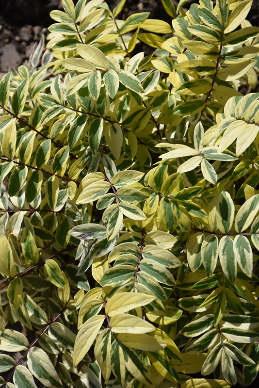 Golden Feathers Jacob's Ladder has masses of beautiful spikes of lilac purple star-shaped flowers with purple overtones and buttery yellow anthers rising above the foliage from mid to late spring, which are most effective when planted in groupings. The flowers are excellent for cutting. Its attractive ferny pinnately compound leaves remain dark green in color with showy gold variegation and tinges of creamy white throughout the season.