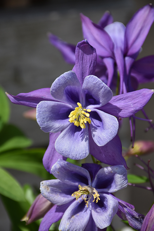 Showy, purple nodding flowers with steel blue centers on slender stems with long, graceful spurs; makes for long lasting cut flowers; controlled habit with short stems on well mounded plants; good for naturalizing partially shaded areas